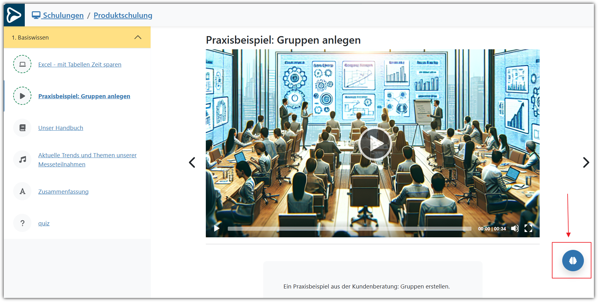 Das Chatsymbol sieht dann in den Schulungsinhalten wie folgt aus: